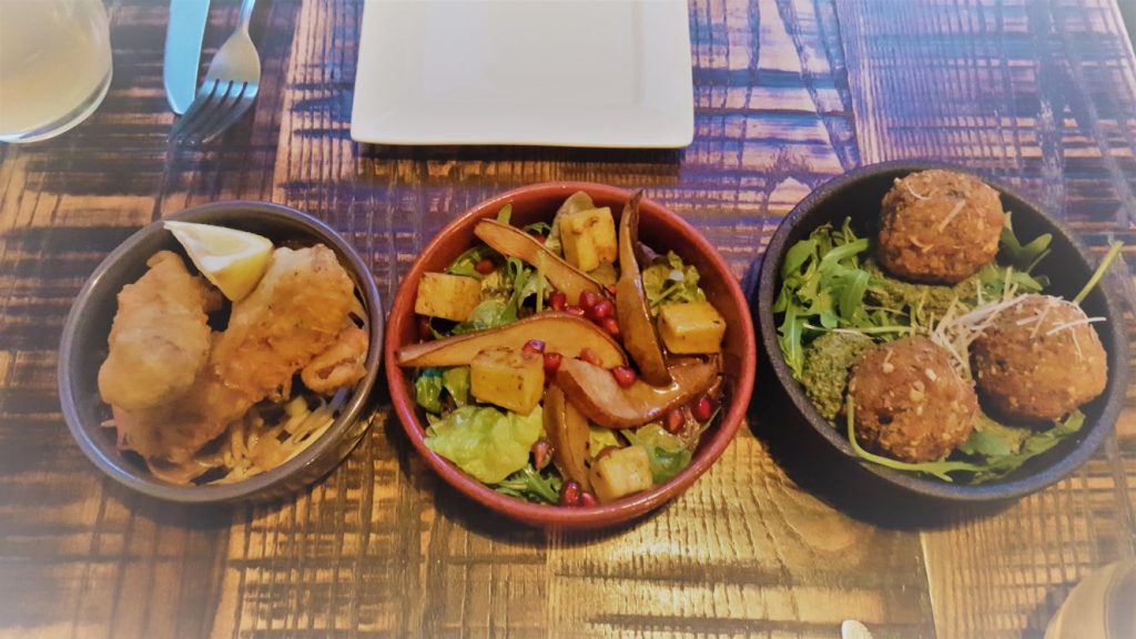The menu looked fantastic… and we had a job deciding what to order. The Tipsy Vegan offers many tapas style small plates and main dishes, so you can either share or go big! As we were struggling so much, we decided to choose three small dishes to share for our starter and then to have our own main. We don’t have much of a sweet tooth but couldn’t resist a dessert to share to finish the meal.