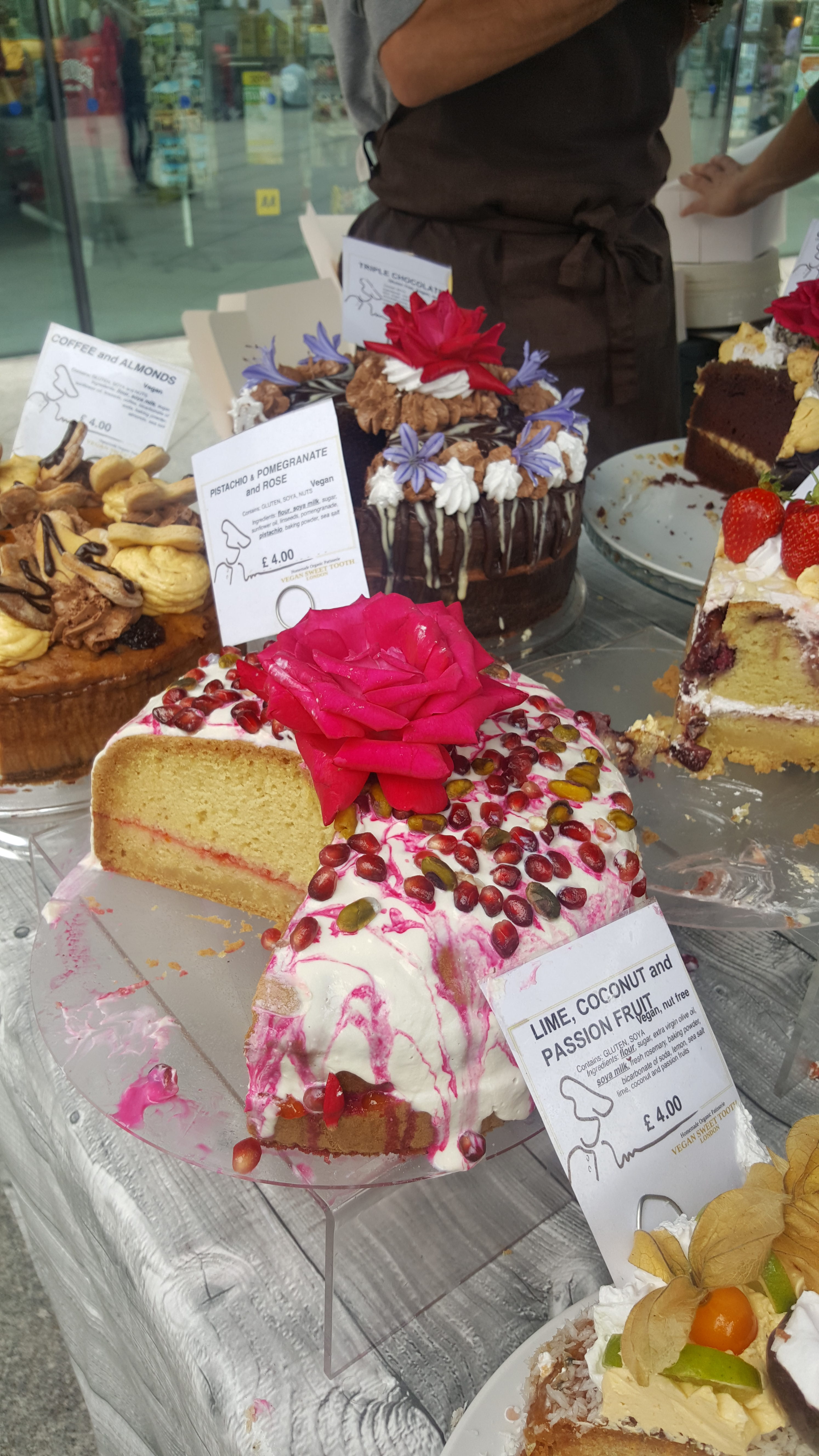 The most eye catching stall at the fayre belonged to Vegan Sweet Tooth London. Their cakes were so impressive, they came armed to the max with sweet treats and savoury bakes too! I really wanted to try it all, but we settled on a brownie with a little shortbread in the shape of a cow on top! We had it the day after the fayre and it was chocolatey and juicy enough to just eat on its own- no ice cream required!