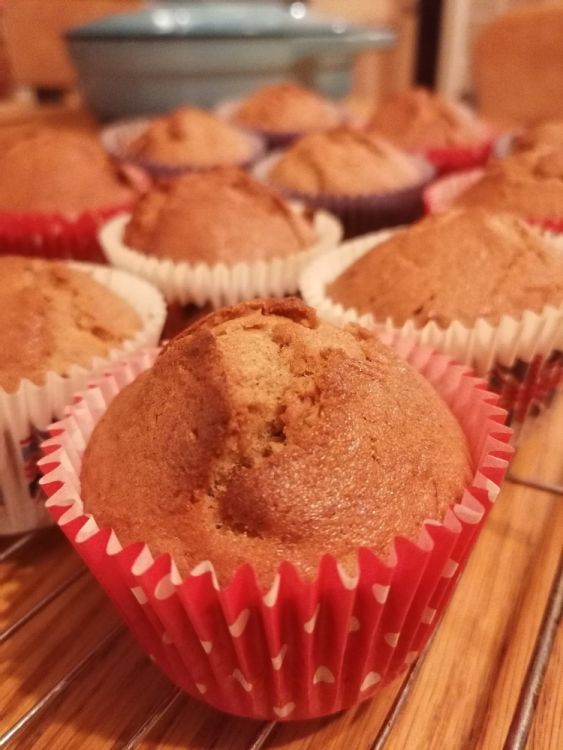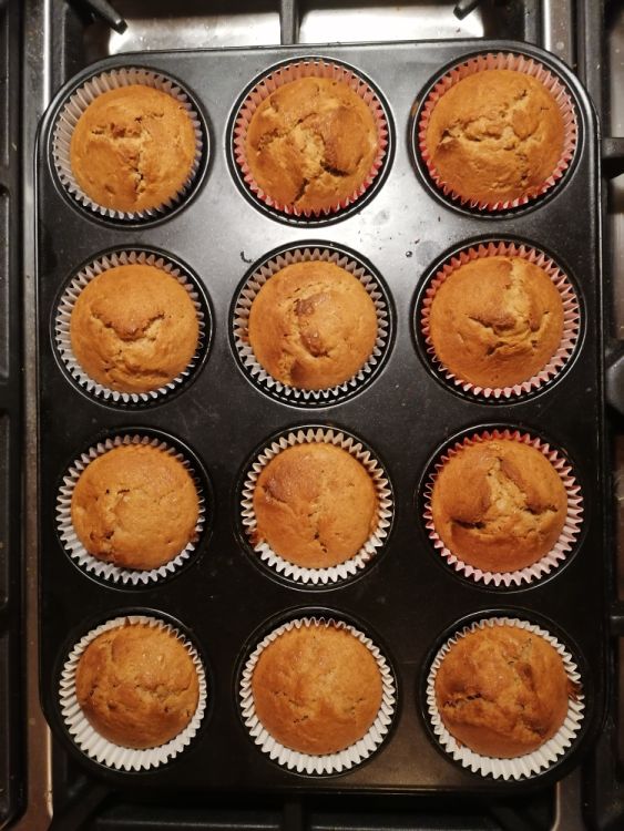 7) Divide the batter evenly between the muffin cases and place into the oven and bake for 30 minutes or until a toothpick inserted into the centre of one of the muffins comes out clean.